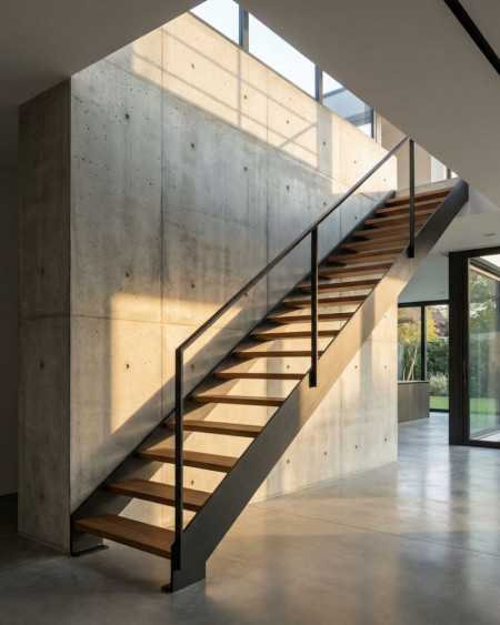 Marches en hêtre massif abouté (lamellé collé) ou chêne massif abouté en épaisseur 40 mm pour une rigidité accrue. Finition des marches brute, non vernies